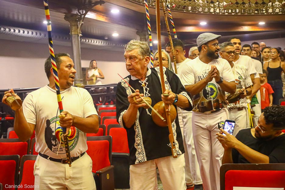 O lançamento aconteceu no dia 14 de abril, no jardim do Teatro Alberto Maranhão, com a presença da viúva Patrícia Vasconcelos, do organizador e do grupo de capoeira do Mestre Marcos.