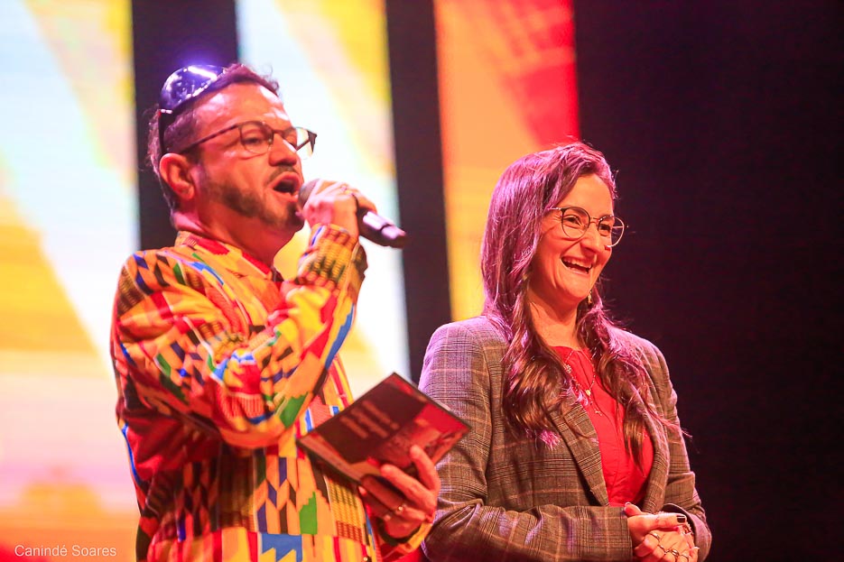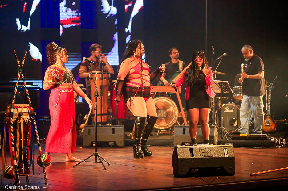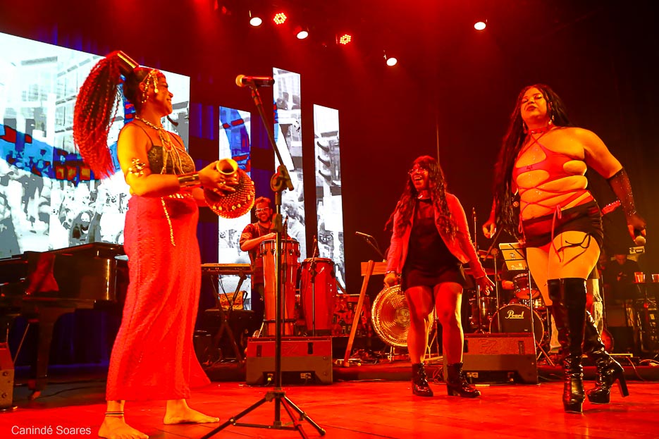 Ao longo da programação, encontros potentes ganham o palco. Pâmela Maranhão e Sâmela Ramos conduzem um momento de força e sensibilidade, entrelaçando espiritualidade, identidade e resistência em uma performance conjunta.
