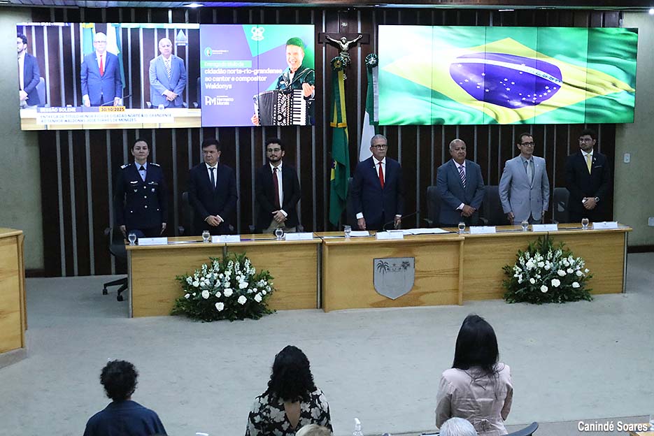 Através de proposição do mandato do deputado Hermano Morais (PV), com subscrição da parlamentar Divaneide Basílio (PT), a Assembleia Legislativa promoveu, na tarde desta terça-feira (30), sessão solene para tornar cidadão norte-rio-grandense o cantor Waldonys José Torres de Menezes. Diversas instituições, por meio de seus representantes, prestigiaram a cerimônia, a exemplo do Governo do Estado, da Prefeitura de Natal, da 7ª Brigada de Infantaria Motorizada, da Base Aérea de Natal e da Câmara Municipal de Natal.